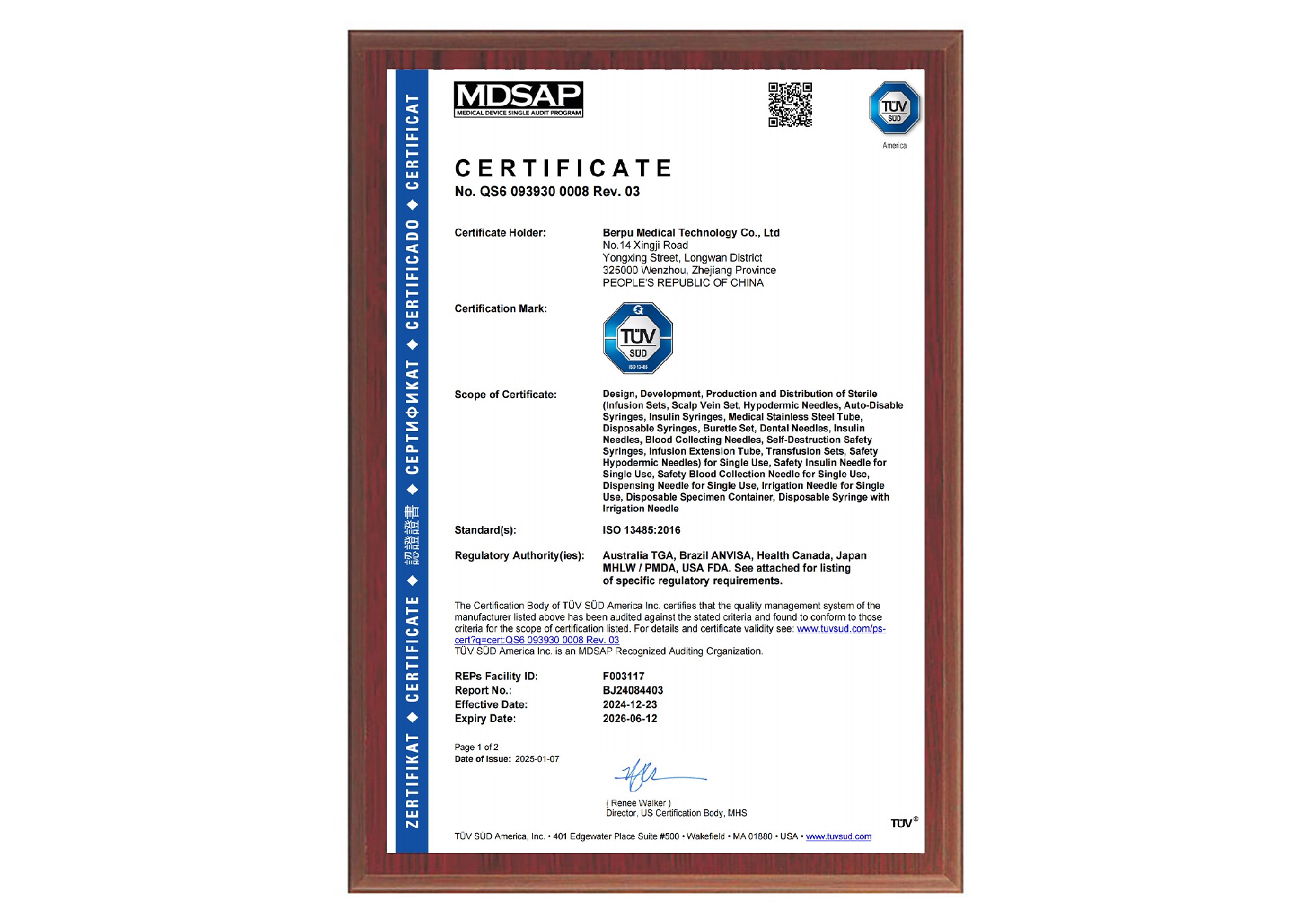 貝普醫(yī)療始建于2000年,是國內(nèi)少數(shù)具備一次性醫(yī)用穿刺注射器械全鏈條研發(fā)、生產(chǎn)及銷售能力的優(yōu)勢(shì)企業(yè)之一??偛课挥谡憬刂菔?,占地面積約47000㎡,建筑面積約115000㎡。公司主要產(chǎn)品為常規(guī)胰島素筆針、安全胰島素筆針、普通注射針、安全注射針、采血針、齒科針、胰島素注射器、普通注射器、安全注射器、醫(yī)用針管等。歷經(jīng)25年的積累和沉淀、25年的改進(jìn)和完善、25年的創(chuàng)新和提高,公司已取得109項(xiàng)境內(nèi)專利,其中29項(xiàng)為發(fā)明專利;取得12項(xiàng)境外專利,其中11項(xiàng)為發(fā)明專利;擁有12項(xiàng)Ⅲ類醫(yī)療器械注冊(cè)證、3項(xiàng)Ⅱ類醫(yī)療器械注冊(cè)證、2項(xiàng)Ⅰ類醫(yī)療器械備案憑證;16項(xiàng)產(chǎn)品通過CE認(rèn)證,11項(xiàng)Ⅱ類醫(yī)療器械產(chǎn)品獲得510(k)產(chǎn)品注冊(cè),4項(xiàng)產(chǎn)品獲得FDA醫(yī)療器械產(chǎn)品備案,并且產(chǎn)品遠(yuǎn)銷世界多個(gè)國家和地區(qū)。